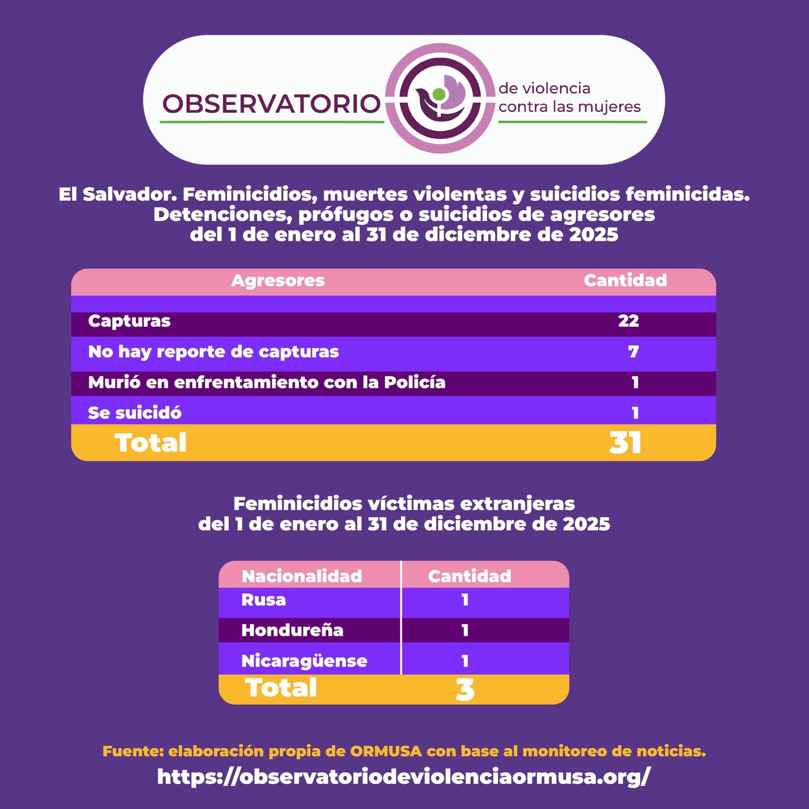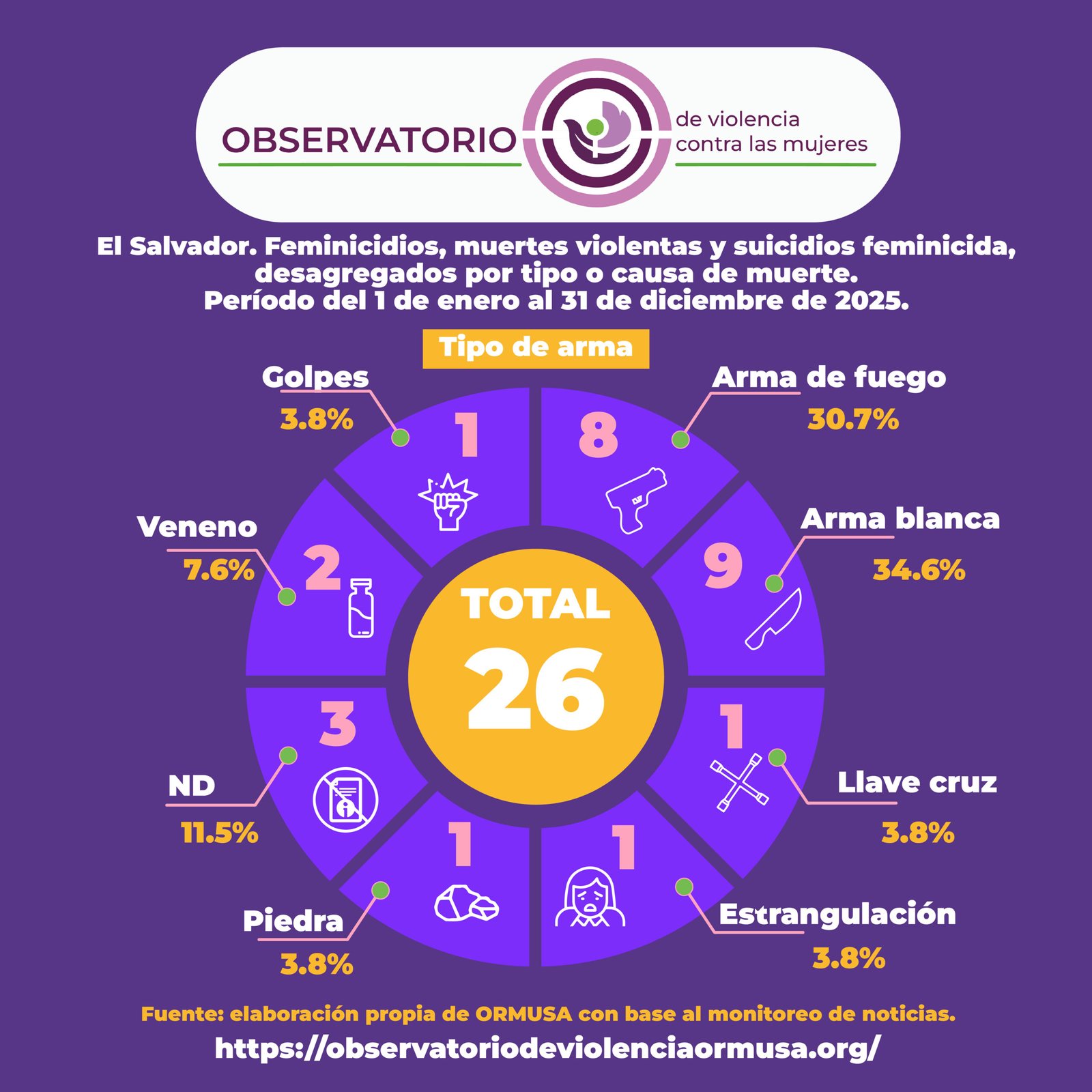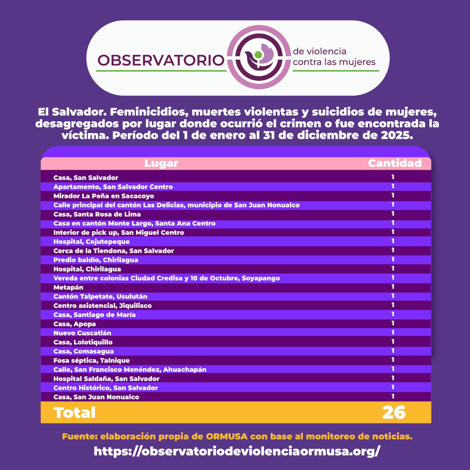 27 Ene Feminicidios 1 de enero al 31 de diciembre 2025 Publicado a las 15:07h en Violencia feminicida por ORMUSA 0 Comentarios 0 Me gusta Descargar Descargar Descargar Descargar Descargar Descargar Descargar