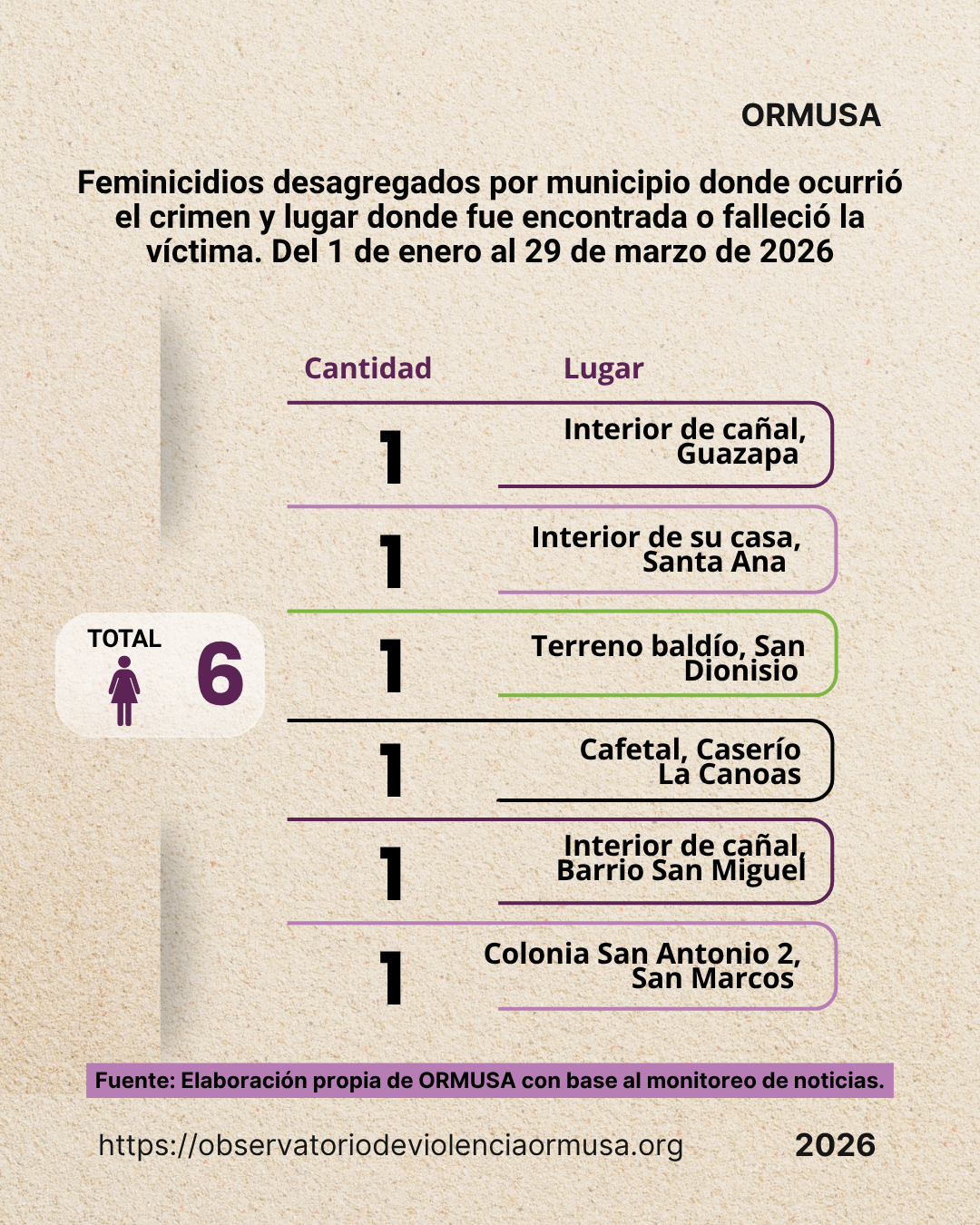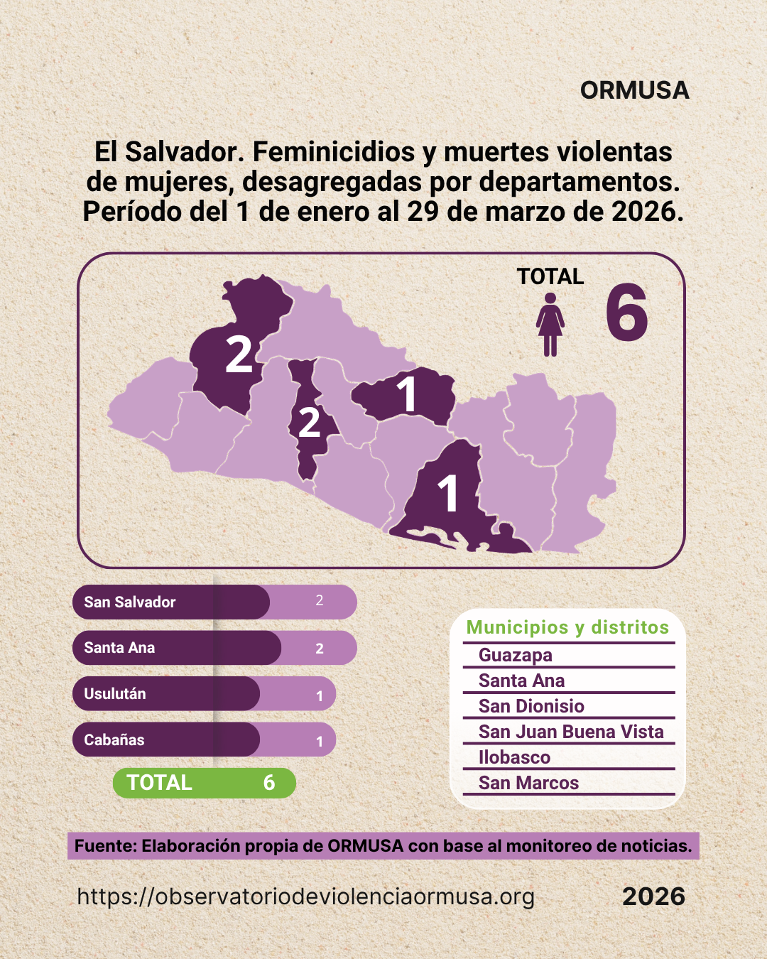 31 Mar Feminicidios 1 enero a 29 marzo 2026 Publicado a las 21:30h en Violencia feminicida por ORMUSA 0 Comentarios 0 Me gusta Descargar Descargar Descargar Descargar Descargar Descargar Etiquetas: Archivo de Feminicidios