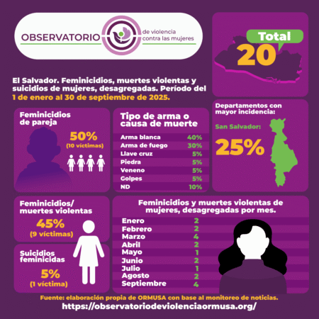 17 Oct FEMINICIDIOS 2025(ENE-SEP)_Mesa de trabajo 1 Publicado a las 12:07h en por ORMUSA 0 Comentarios 0 Me gusta